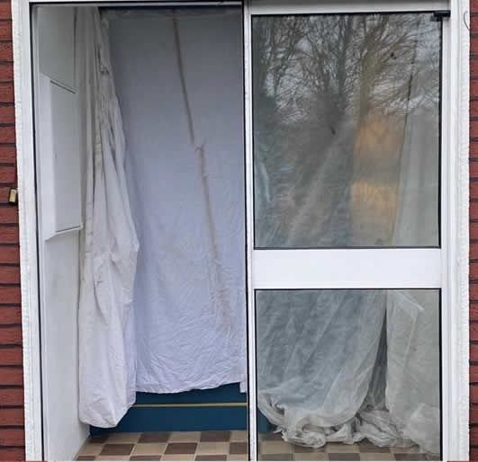 Old aluminium slider door replaced with UPVC French doors.